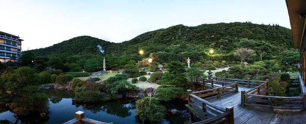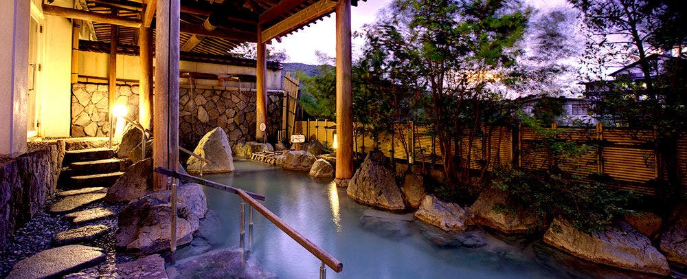 昭和4年創業から引き継がれる、おもてなしの心。四季折々の表情を魅せる日本庭園、それを臨むロビーラウンジ。美肌の湯にゆるりと浸かり、ご夕食は旬の食材を使用した会席料理をご用意致します。日常のことはすべて忘れ、当旅館での滞在を存分にお楽しみ下さい。